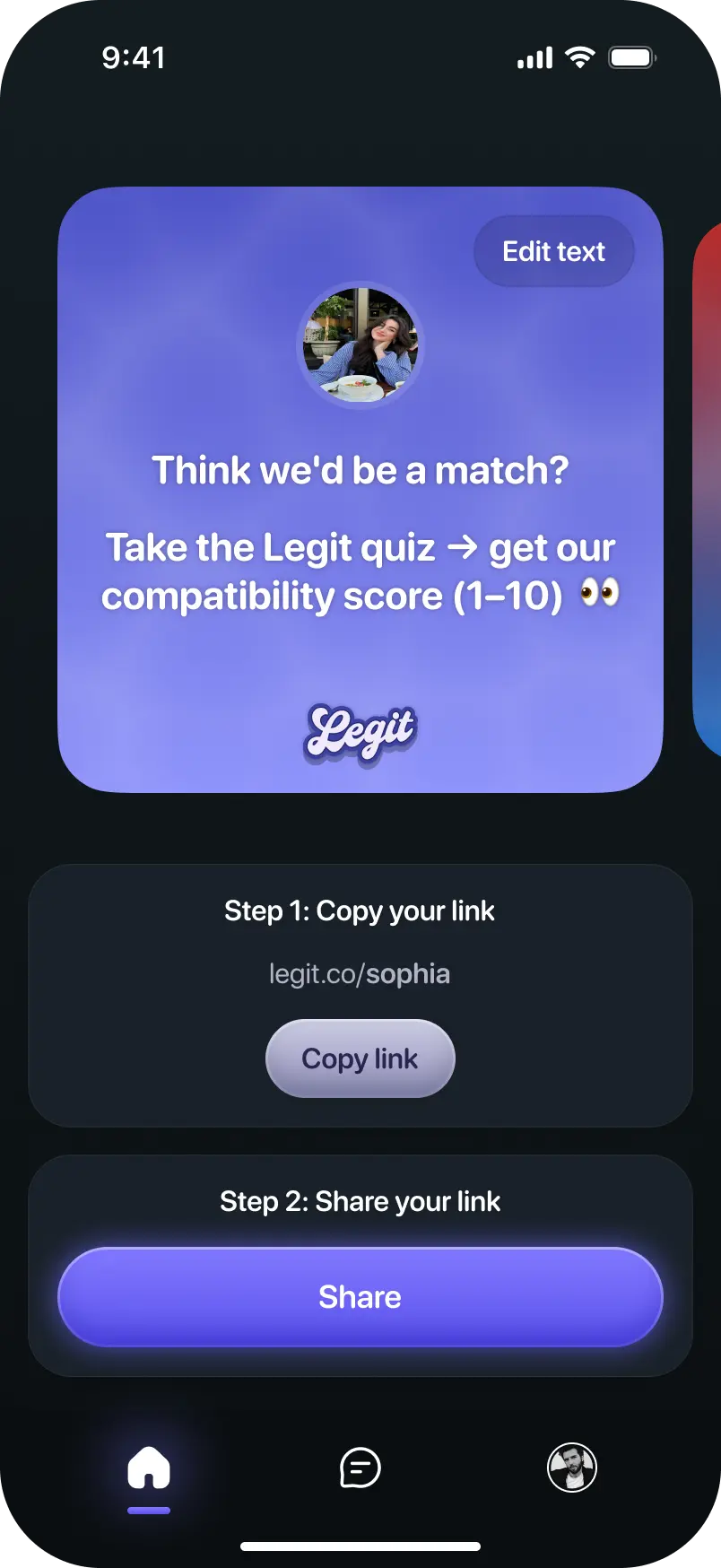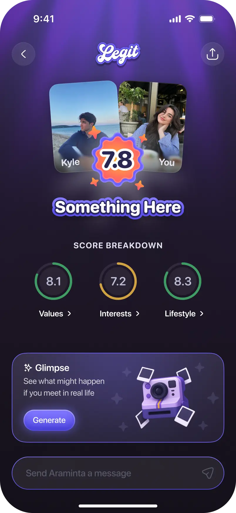 Get a compatibility score with anyone who takes the quiz through your link
